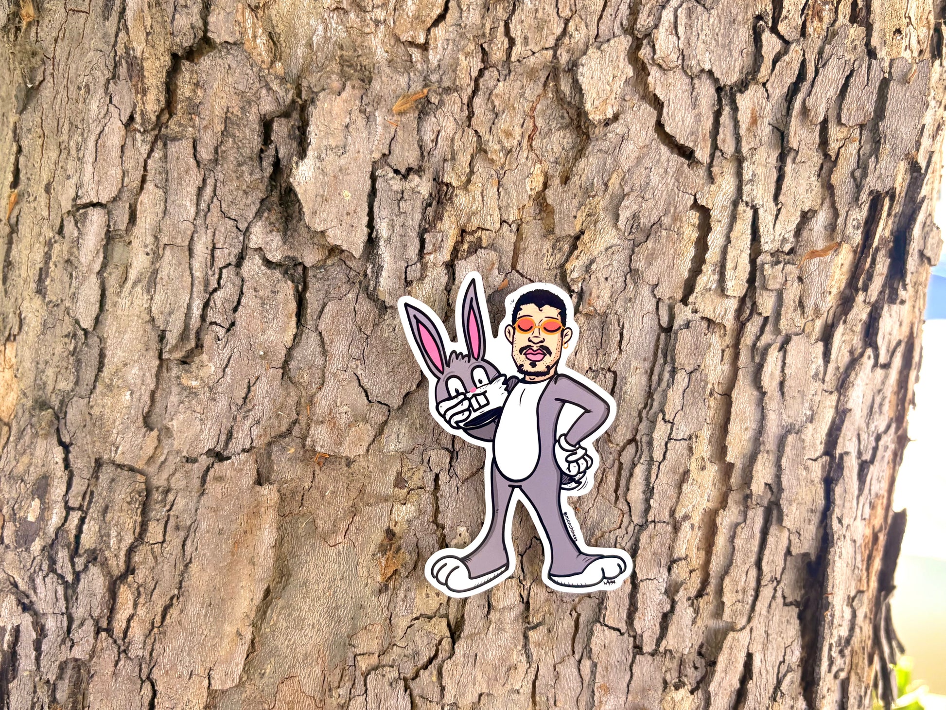 What's up, doc? Looks like Bad Bunny has been hiding a secret. He's Bugs Bunny in disguise. The unmasking we didn't know we needed. It's a cute and whimsical design.