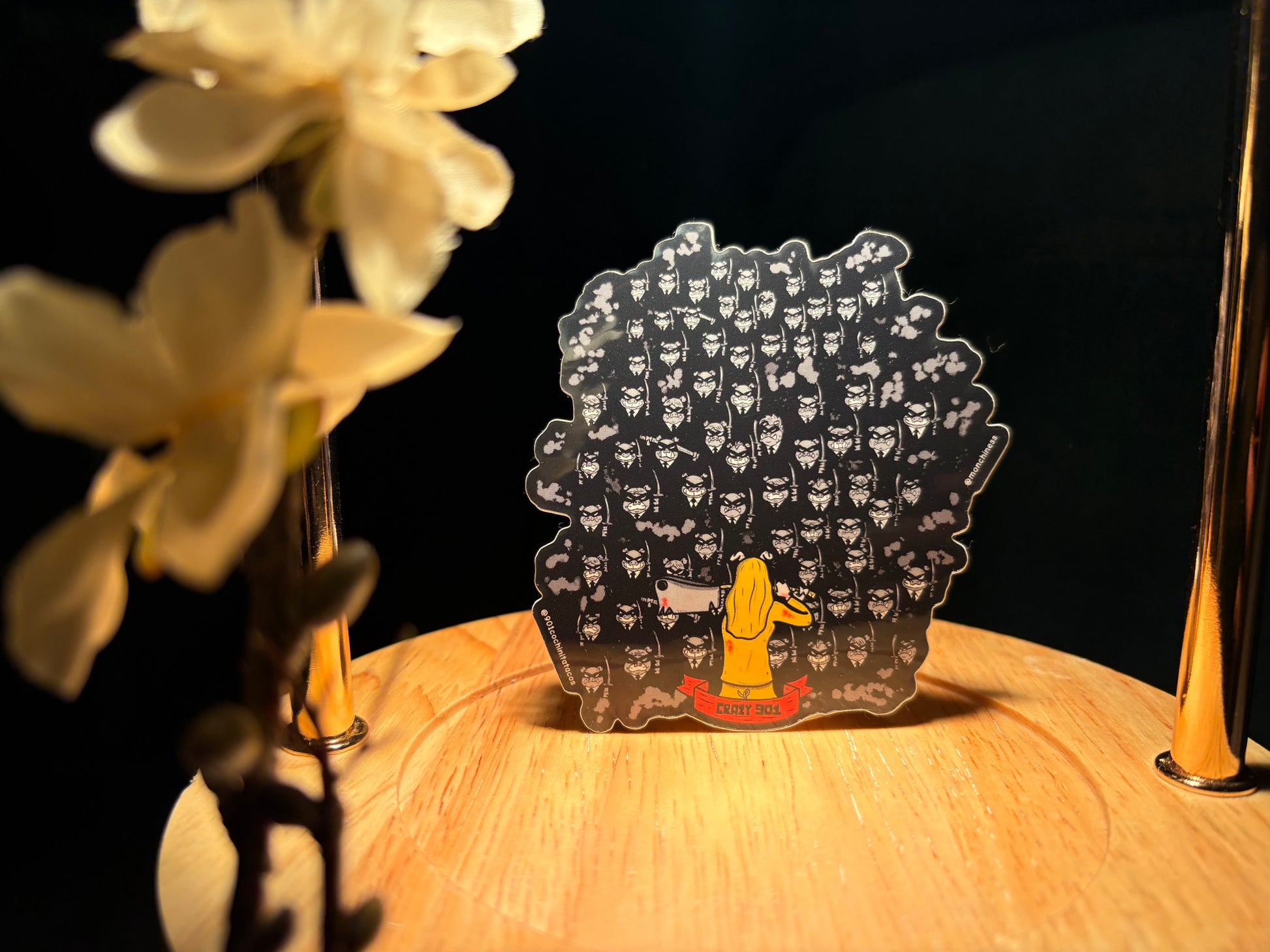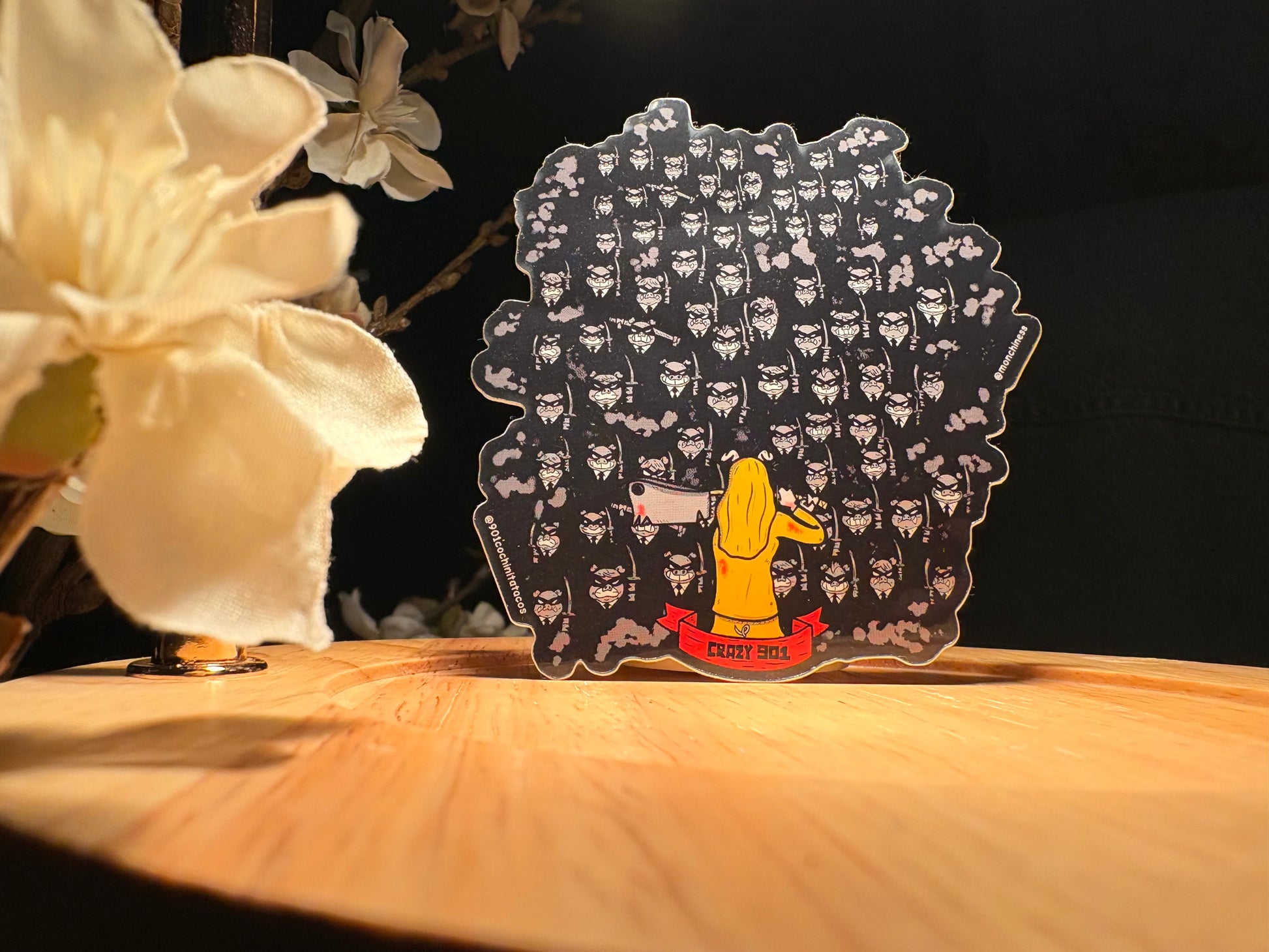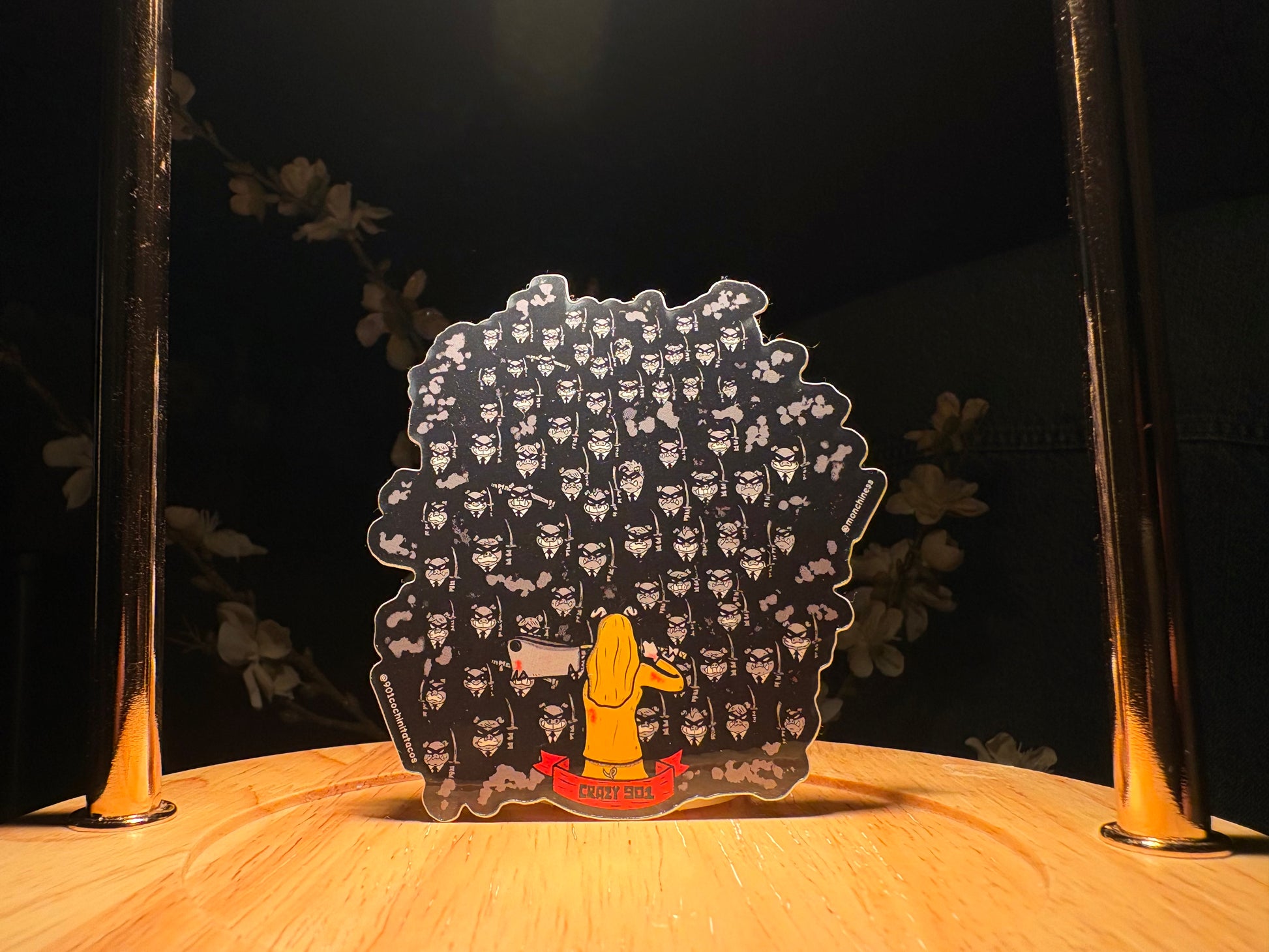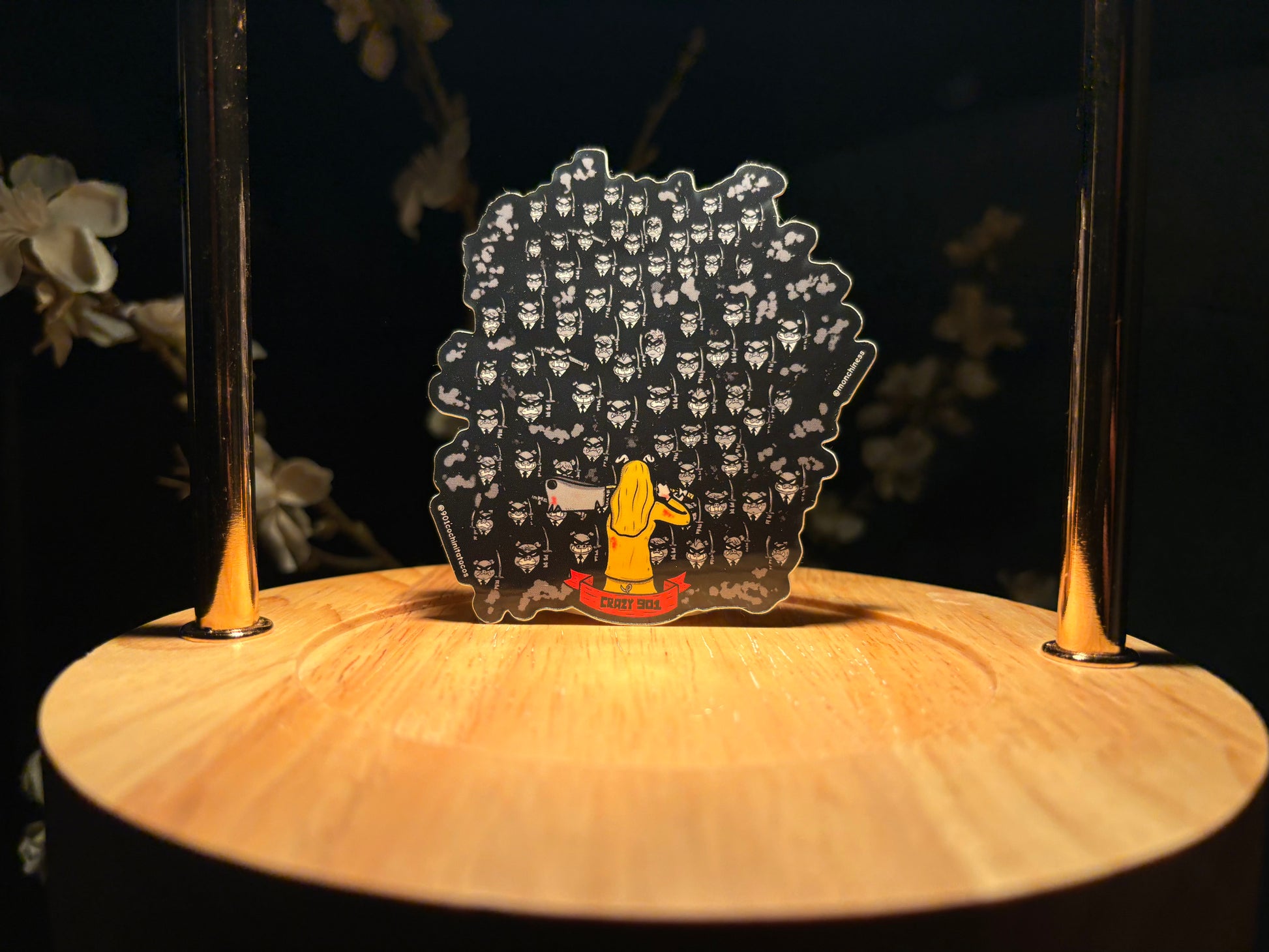 Prepare for a pork chopping good time. This is a collaboration with Cochinita 901 Tacos. We've given the iconic Crazy 88 scene a twist. The twist? The protagonist and all the Crazy 901 are reimagined as pigs. It's a one of a kind design that's sure to be a standout in your killer sticker collection.