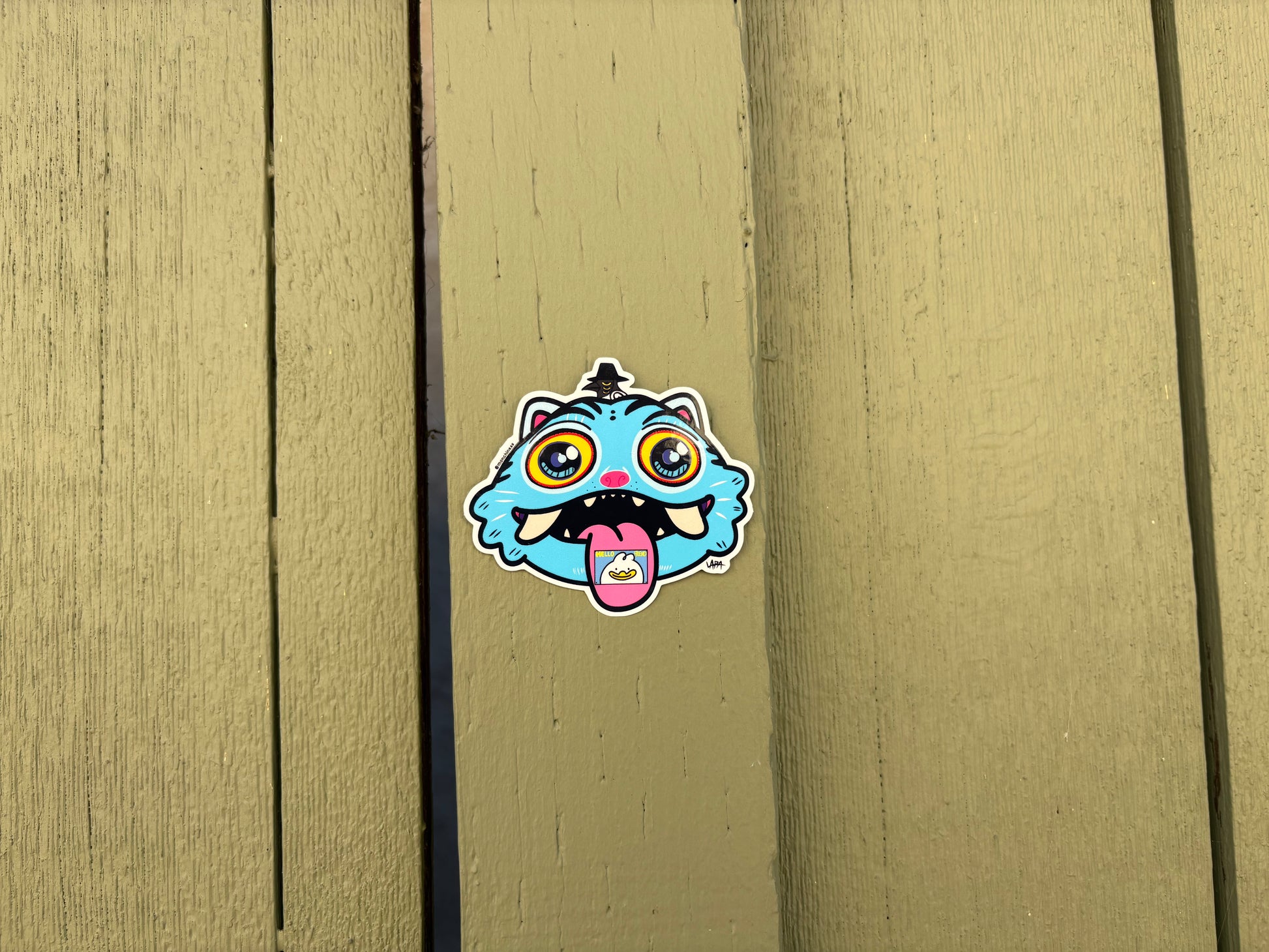 Stop the music! The most adorable blue tiger on four paws has been spotted. The Derpy Tiger sticker (complete with his miniature bird sidekick) are here to build a friendship. He sealed an envelope just for you.