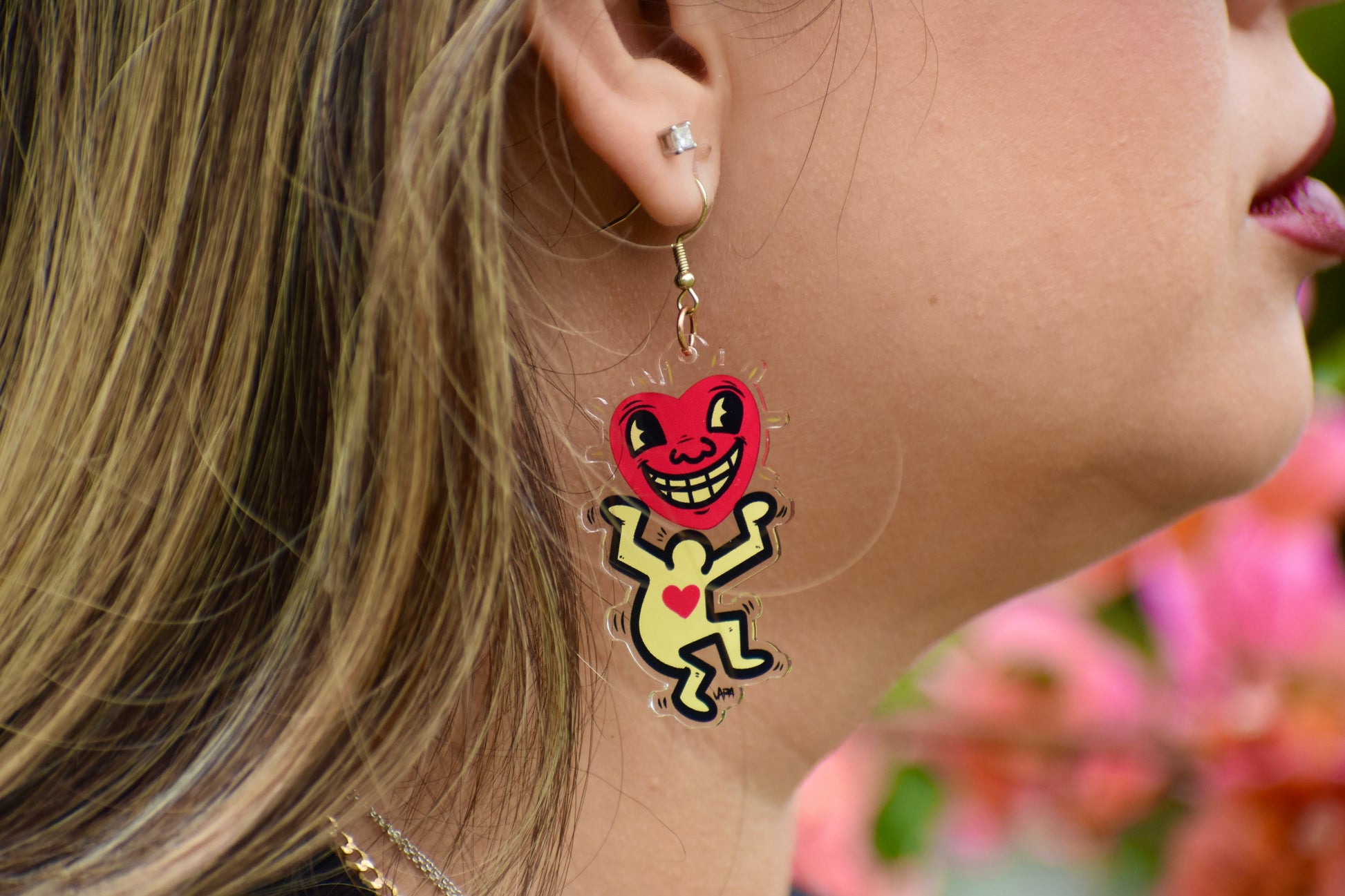 Looking for a fun and artsy way to express yourself? Our new Keith Haring earrings are here to stay. Featuring one of his most beloved characters carrying a happy red heart just for you. Bring a piece of the iconic New York graffiti are scene to the City of Angeles.