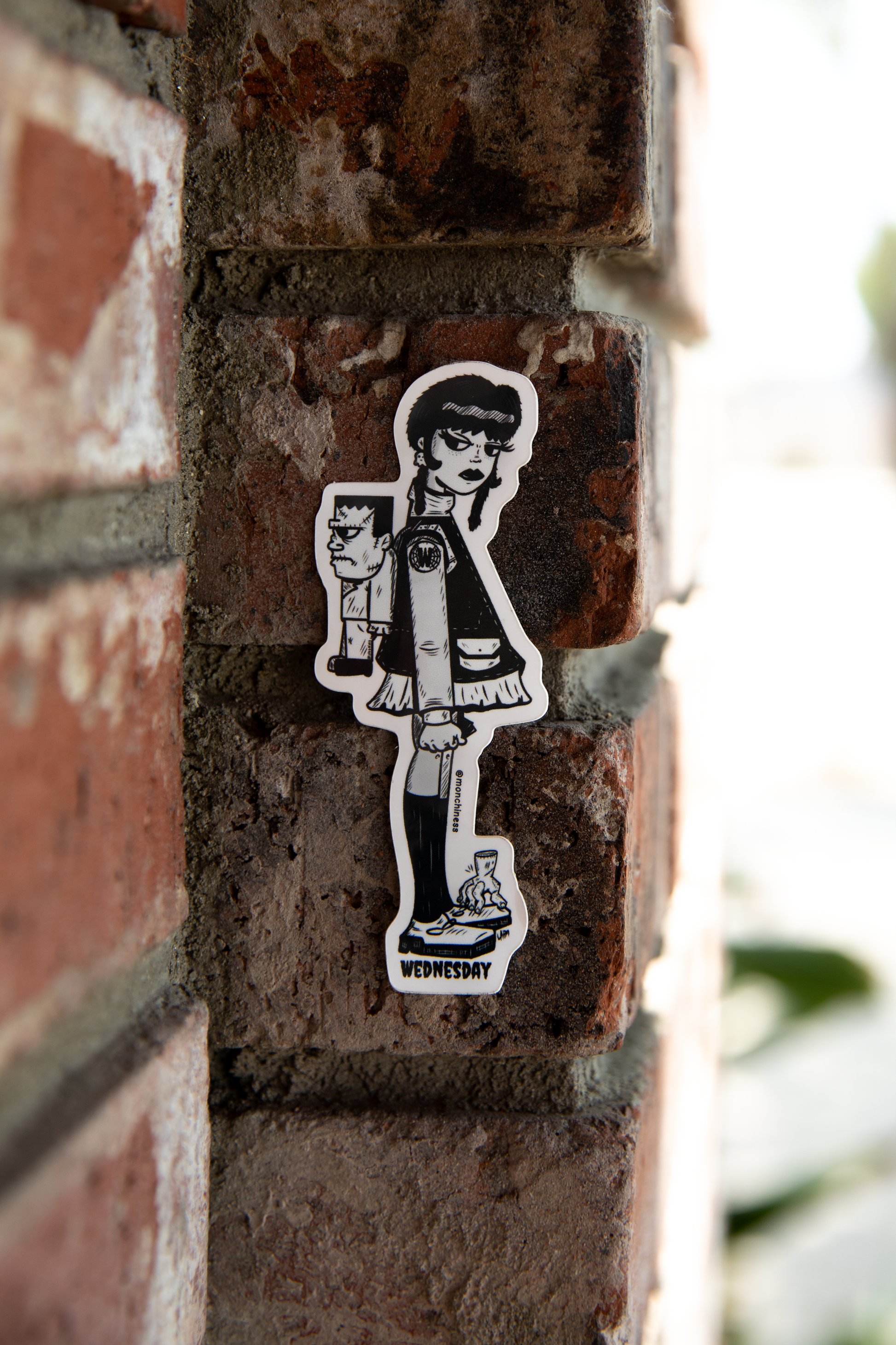 Channel your inner misfit with our Wednesday sticker. A tribute to the queen of darkness. It's the perfect blend of morbid charm and fierce strength. It's a cute way to embrace your dark heart and show the world that a little gloom can be absolutely gorgeous. She might look intimidating, but she's got a friendly dark heart.