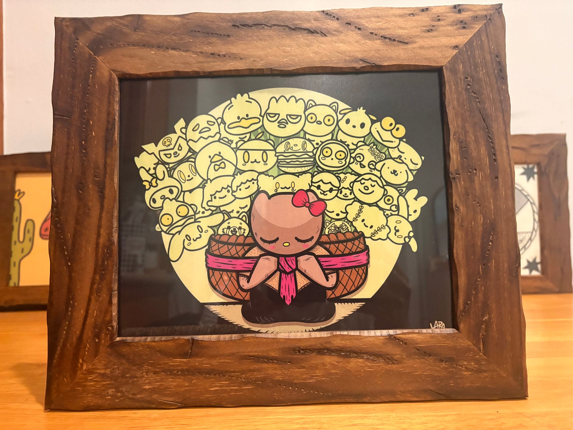 Our Kitty Flower Vendor print is a homage to Diego Rivera's 1942 masterpiece. This familiar Kitty is not only brown and proud. She is strong, independent, and carries her own weight. You'll find familiar faces acting as flowers themselves. It's a cute print that stands out.