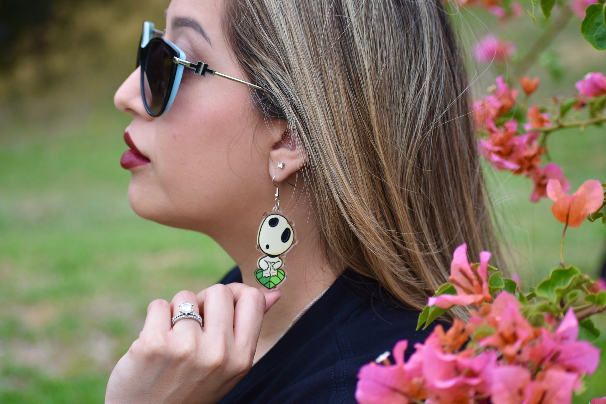 Feeling a little disconnected from nature? Our Kodama earrings are the perfect remedy. These adorable spirits perched on a leaf with positive energy. They're a charming reminder that even in the busiest city, you can carry a piece of a peaceful and thriving forest. Let these cute spirits be a source of calm and happiness on your life.