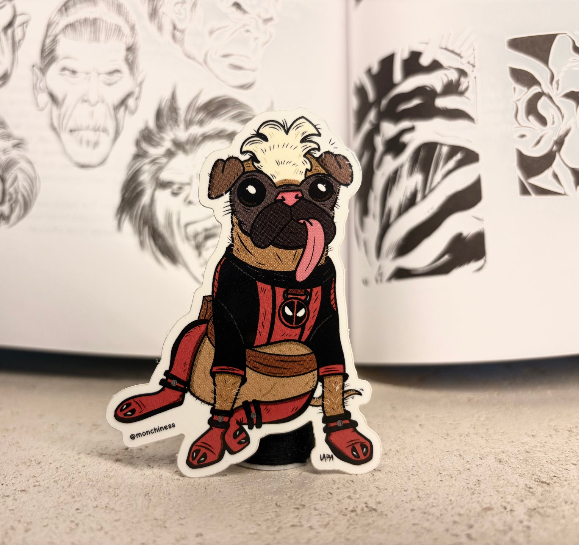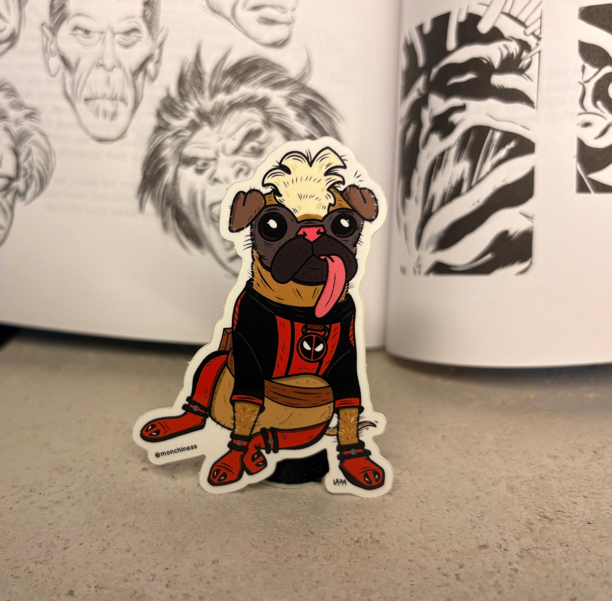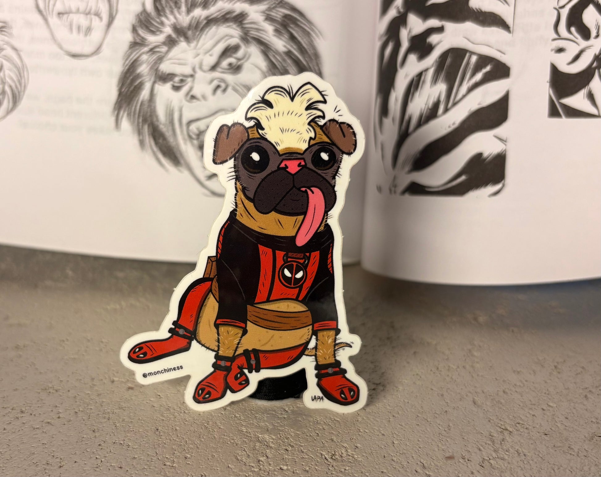 Meet Dogpool, the cutest hero with a pink tongue and a heart of gold. This pug is a fantastic superhero. She's your new best friend. She's ready. to fight crime and steal hearts. She's proof that even the toughest hero can be unbelievably adorable.