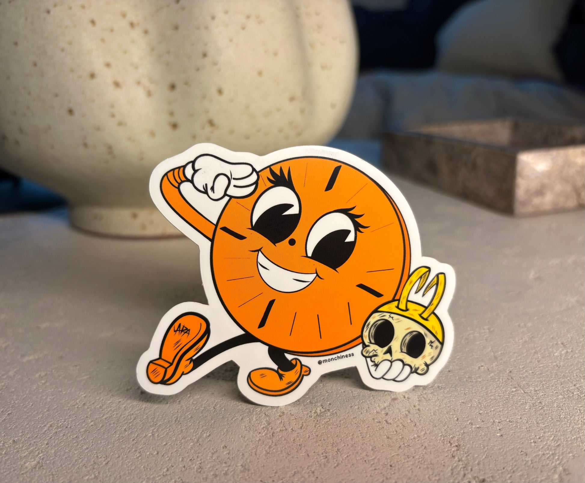 She's cute. She's punctual. She's got a bone to pick with anyone who's running behind on time. Stick her on your belonging and let her be your personal bone chilling time keeper.