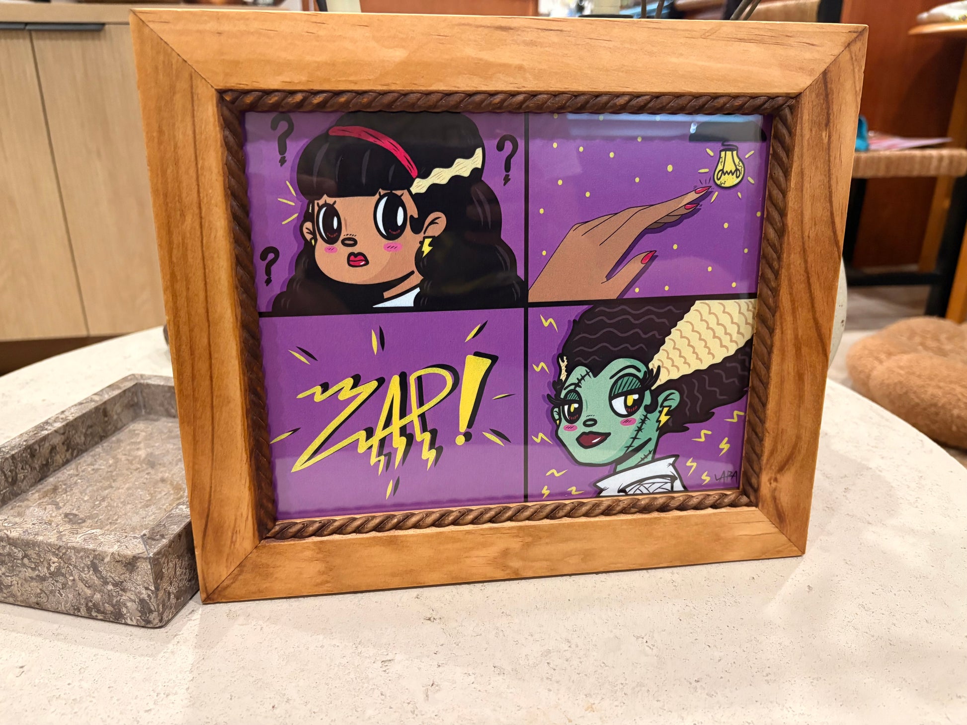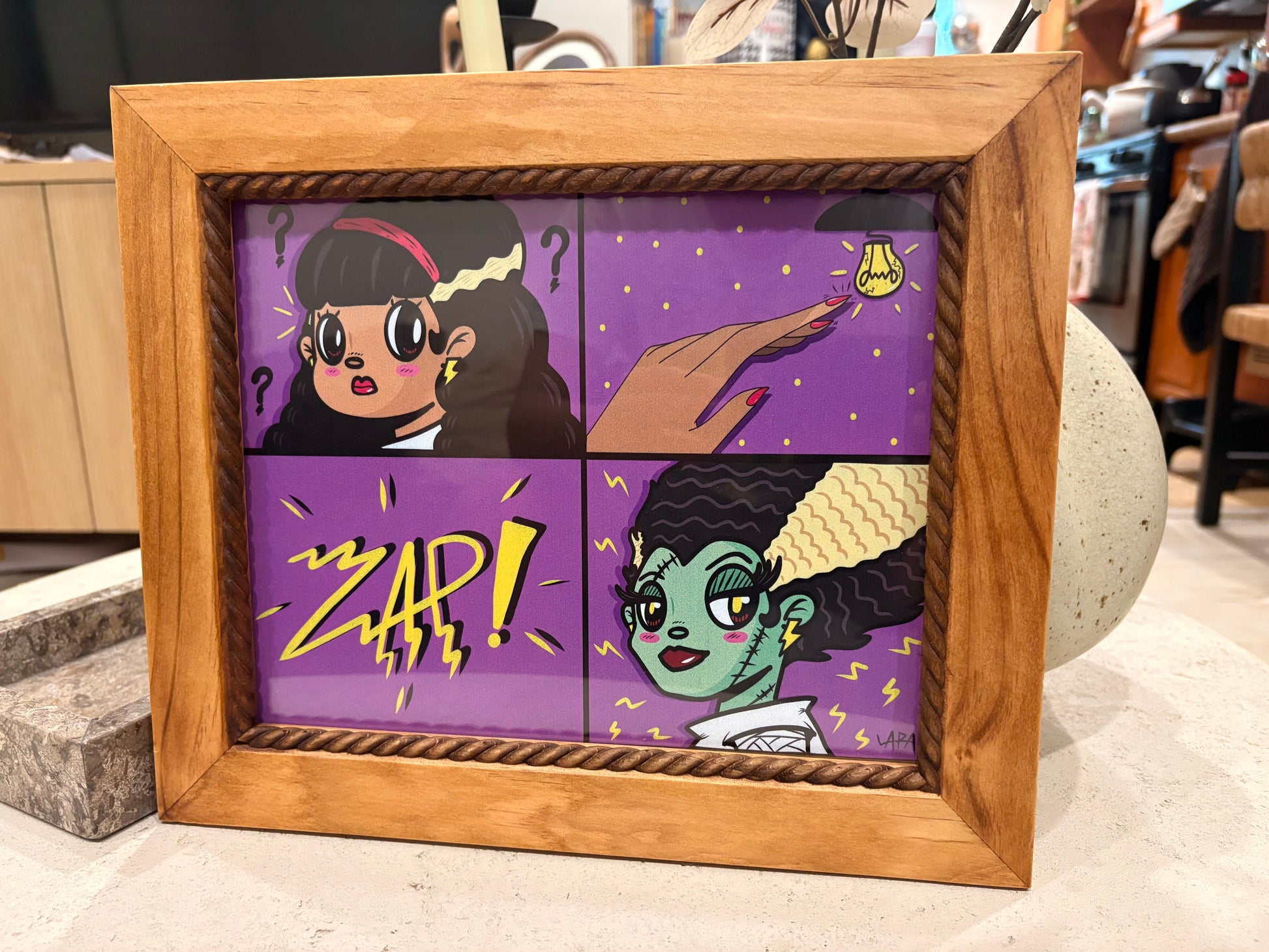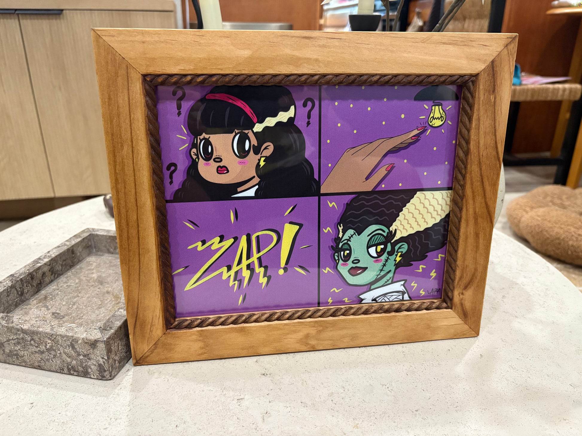 The tale of curiosity and transformation. Her origin started with a simple touch. Her curiosity reached for a damaged light bulb. It zapped her into the beautiful monster she is today. A great addition to any monster collection. The Zapped Bride celebrates how a little curiosity can lead to a stunning and powerful new identity.